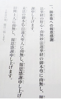 ↑勤行改訂で「諸天供養」と 「日目上人への報恩」を削除した。 |