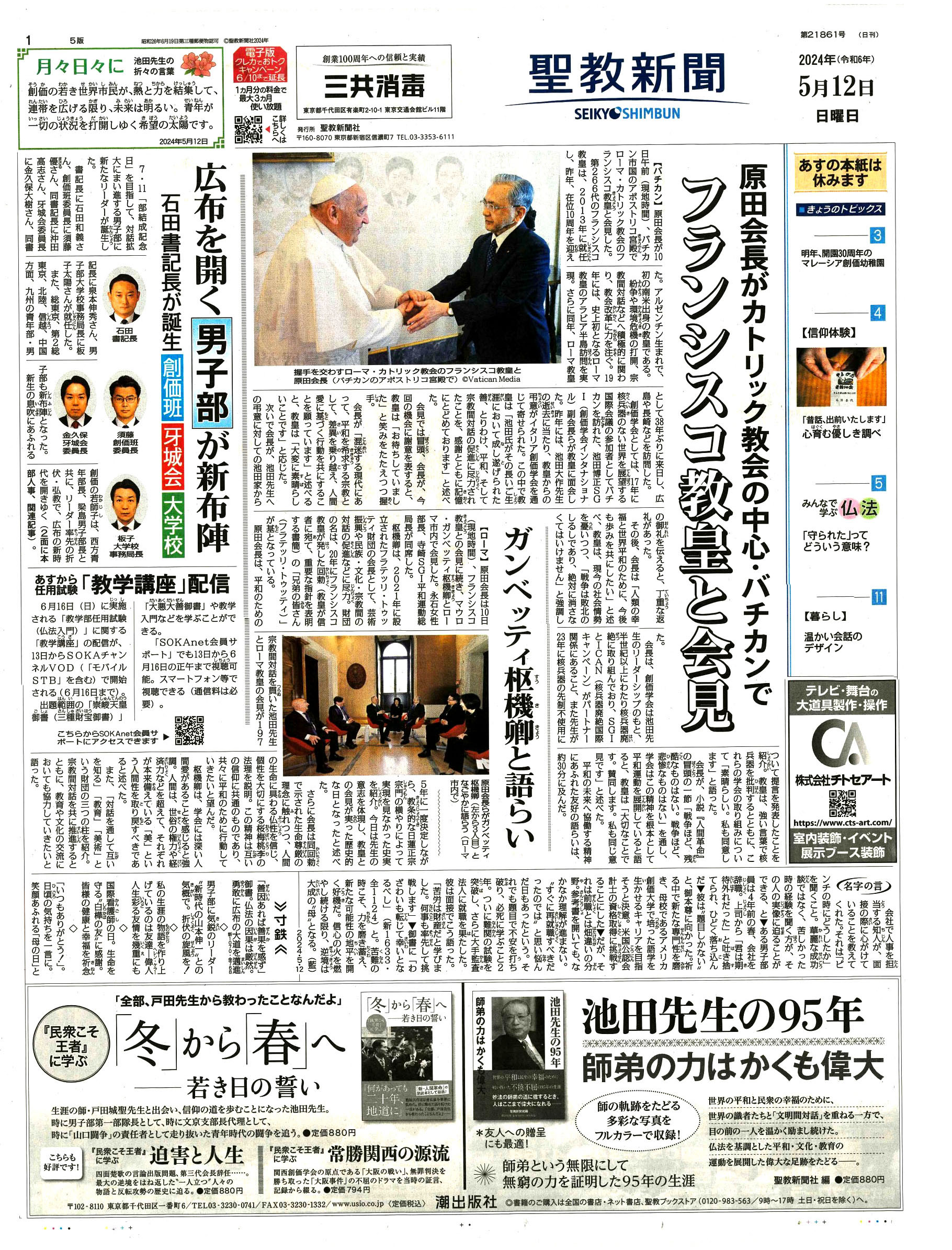 【創価学会の謗法容認路線について】 ●原田会長は2024年5月10日午前(現地時間)、バチカン市国のアポストリコ宮殿でローマ・カトリック教会のフランシスコ教皇と会見した。 会長が「混迷する現代にあって、平和を希求する宗教として、差異を乗り越え、人間愛に基づく行動を共にすることを願っています」と述べると、教皇は「大変に素晴らしいことです」と応じた。(創価学会公式サイト)。 ●平成5年12月16日、東京都内のホテルで、立正佼成会の幹部と共存共栄の話し合いをした(朝日・読売・毎日の各新聞に掲載) ●平成9年2月11日、(当時)秋谷会長は「本尊安置に謗法払いの必要は無い」と発言(聖教新聞:H9.2.11) ●天台宗・真言宗・浄土真宗・天理教などの諸教団を訪問し、「今まで『邪宗教』呼ばわりし、すまなかった」とお詫び行脚(あんぎゃ)を行った。 ●旧統一教会をはじめ、多くの邪宗教団とともに「平和フォーラム」「勉強会」等を開いて協調路線を進めている。 |
