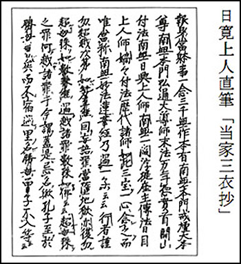 総本山第二十六世日寛上人は、『当家三衣抄』に、 「南無本門弘通の大導師、末法万年の総貫首、開山・付法・南無日興上人師。南無一閻浮提の座主、伝法・日目上人師。嫡々付法歴代の諸師」(六巻抄225) と仰せられ、日興上人をはじめとする代々の御法主上人を僧宝として敬うべきことを教えられています。